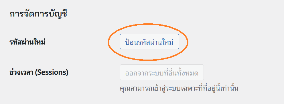 4.เลื่อนหาหัวข้อ การจัดการบัญชี คลิกปุ่ม ป้อนรหัสผ่านใหม่